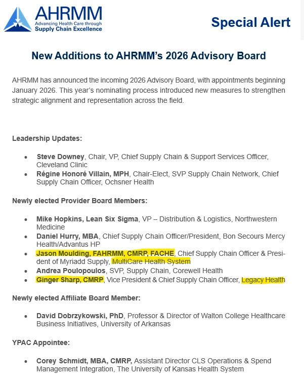 WSHMMA is a regional diamond chapter of the Association for Healthcare Resource & Materials Management (AHRMM) of the American Hospital Association (AHA).